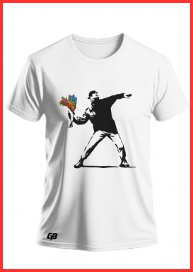 A Camiseta Flower Thrower traz uma das imagens mais icônicas da arte de protesto contemporânea a figura do manifes...